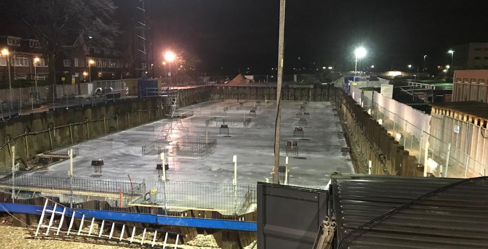 Exact 12 maanden geleden hebben wij de keldervloer gestort en vandaag (26 november) hebben wij de dakvloer gestort. Totaal hebben wij een kleine 4.000 m3 beton aangebracht. Volgende week storten wij de laatste liftopbouw. Op de foto's is de gestorte dakvloer van vandaag te zien en een foto van de keldervloer vorig jaar november.